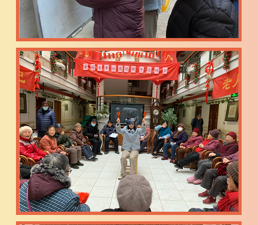 老少聚情木版画