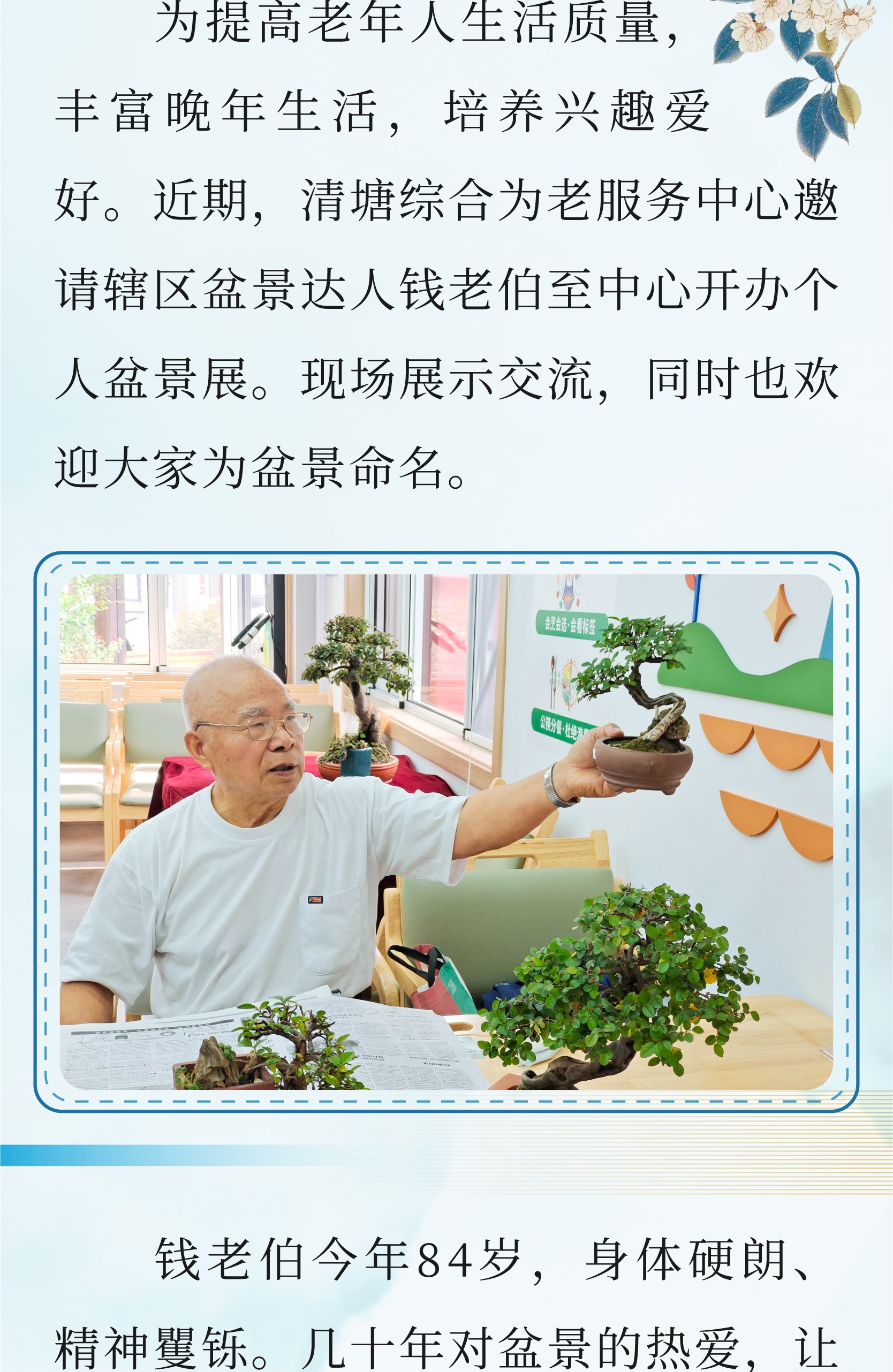 清塘综合为老服务中心钱老伯个人盆景展